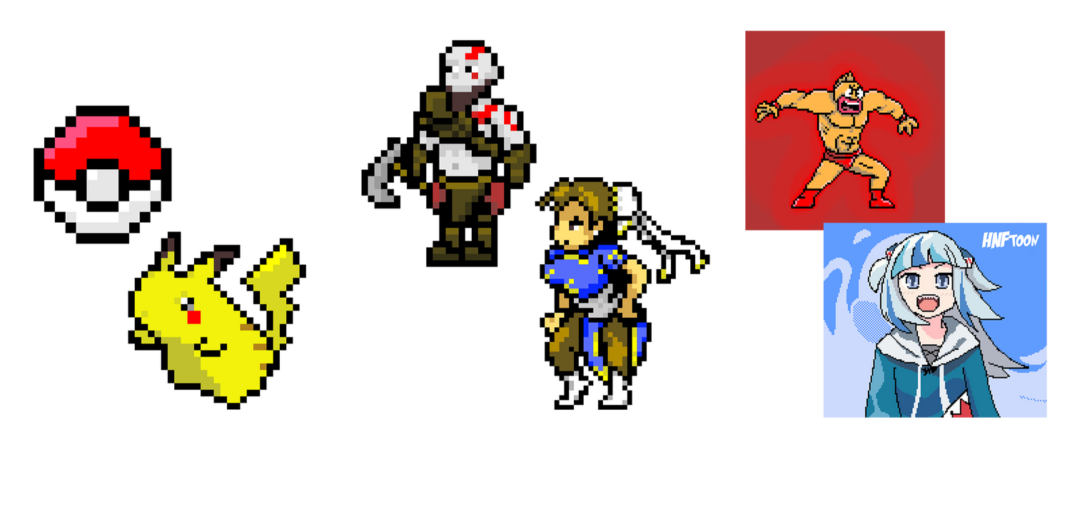 I can make illustrations with several styles, namely cartoon, semi-realist, pixel, and anime. with the following example: